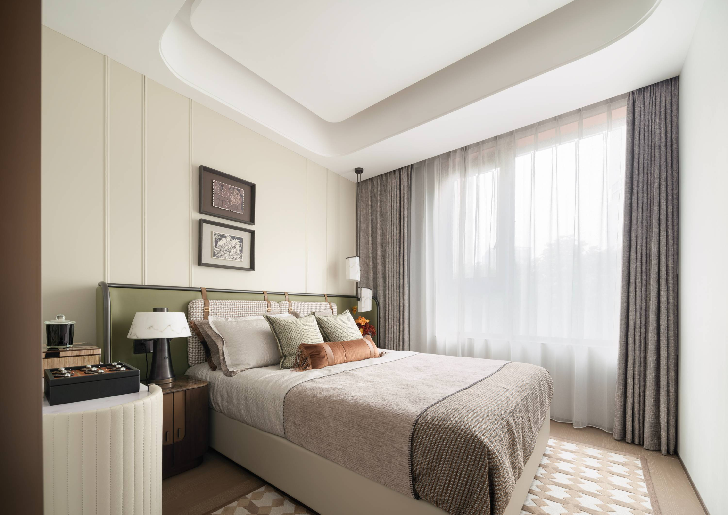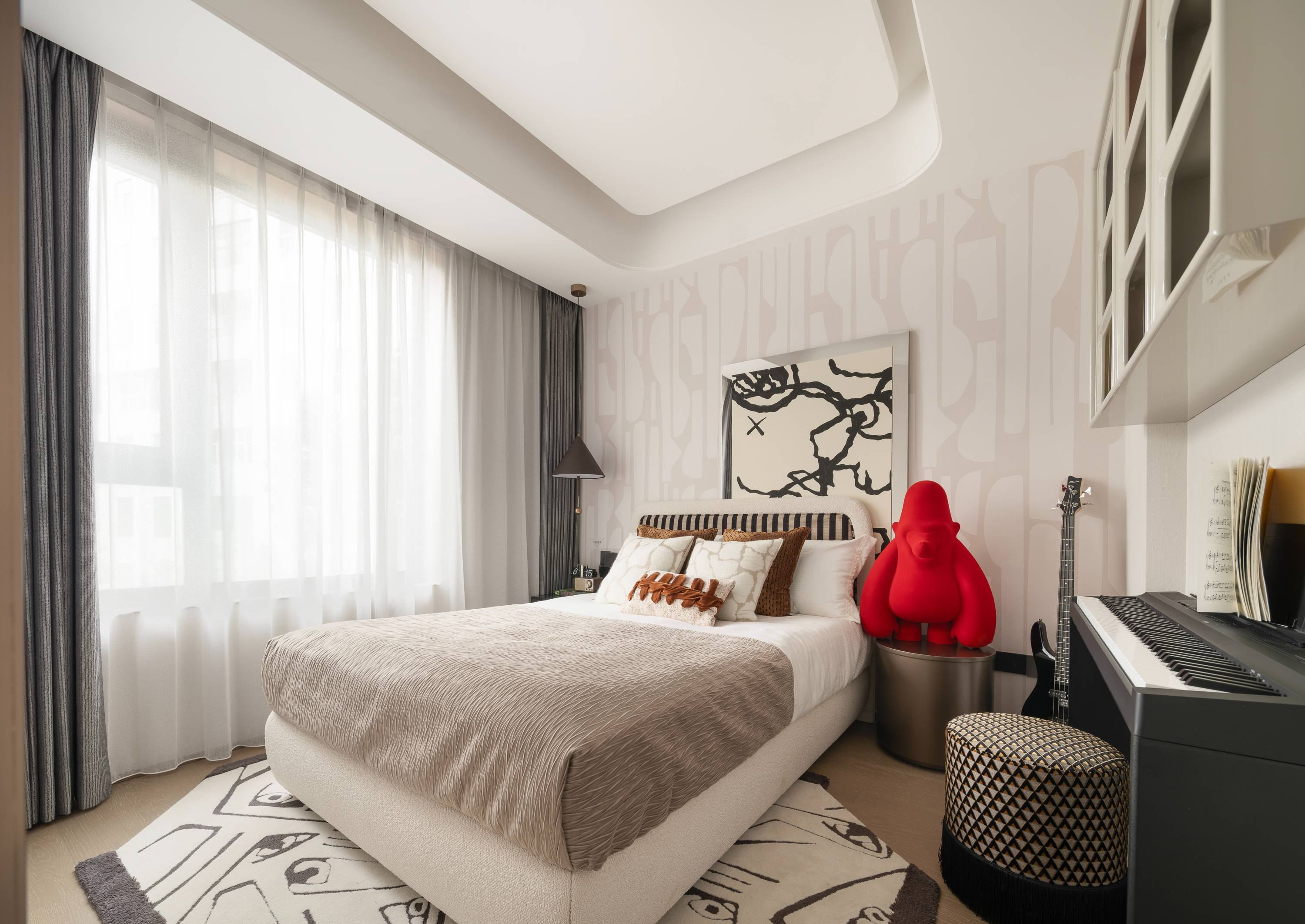 走进卧室,氛围明显慢了下来。